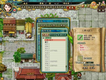 玩家11级后,可以针对不同装备的材料需要,通过相关的NPC(纺料收集师、采药师、农夫、伐木工、采矿工、剥皮师),进入不同的采集区进行采集。同时,你还可以通过加工师,学习加工技能,对原料进行加工。但在木工、冶炼、制皮和纺织的技能中,只可习得一种。将材料加工后,你就可以从物品栏的进行制作钮来开启制作界面,制作出需要的装备。每个装备都有不同的等级限制。越高级的道具,制作成功率越低,但通过使用提升机率宝石,可以提升制作成功的机率。
