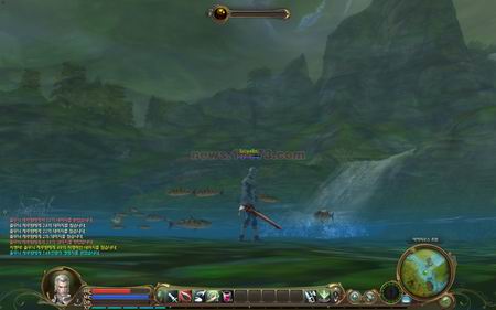 从不完全的特效的游戏画面来看,游戏的人物场景制作的比较细致,游戏的刀光剑影效果和《天堂2》类似,游戏的水面效果可以算是比较成功的一个方面,即使在特效不高的情况下依然有很华美的表现,水中还有许多鱼儿不断的游动。