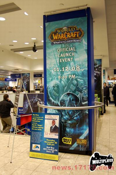 11月13日是《魔兽世界 (专区 视频)》第二个资料片《巫妖王之怒》发售的日子。在美国有四场首发活动在同时举行。在纽约百思买卖场的首发因为有暴雪的CEO Mike Morhaime亲临现场也显得更为隆重。由于活动地点距离MTV时代广场总部仅有一个路口之遥,MTVPLAYER也派出记者也到场进行了采访。可能因为7-11便利店提前销售以及网上预订的分流,现场的人数并像预想的多。