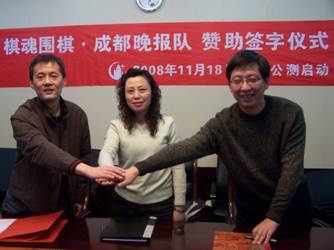 11月17日下午,第22届晚报杯棋魂围棋·成都晚报队的赞助签订仪式在位于成都高新区科技工业园区的梦工厂网络信息有限公司隆重召开。成都棋院院长谢祖瑞女士、副院长宋雪林九段、成都晚报体育部主任王若男先生等嘉宾莅临现场,多家新闻媒体进行了采访。