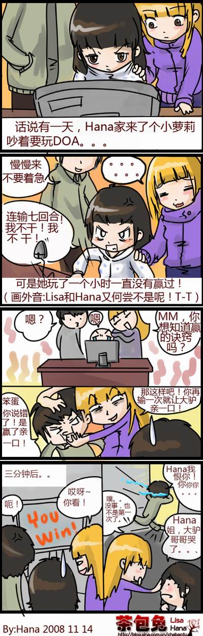 简介:Lisa跟Hana是大学里认识的好朋友,死党,难友,损友。什么都可以形容我们的友情,只要不是太坏的字眼。互相折磨过,互相欺负过,但是还是非常友爱啦。两个人最喜欢惹是生非,唯恐天下不乱,最默契的地方就是——都喜欢游戏,也都喜欢画画。