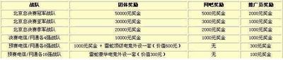 例如:四强战队可获得10000元团队奖金,但无法获得八强的雷蛇顶级电竞外设一套。