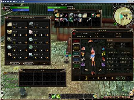 装备系统是新笑傲江湖的另一个特色,而且是重点。创建角色后,玩家只能使用所选的武器,如果装备了不是该种类的武器,将无法释放技能。该游戏的武器装备舍弃以往一贯的等级限制模式;人物可以无限制地穿上任何品质的装备。就是说高级玩家在高级副本打到的“极品”,不用考虑等级,可以让刚刚新建的玩家使用。这开发理念迎合了低级玩家能以“弱”胜“强”的好胜心理,能持有高级装备越级砍怪的快感。另外游戏装备种类丰富,人物从头到脚,还有首饰等,共有11个部位可以装上装备;装备分成5种品质,分别为平凡(白)、优质(绿)、罕见(蓝)、完美(紫)、传世(橙);装备可以升级,但是可以进行升级的次数是受到品质的限制,品质越好,可以升级的次数越多;装备全部可以通过NPC制造出来,但是其附加的属性的多少完全靠运气。通过打造或者打怪获得装备的5种品质下,随机出现的属性有高低之分。装备可以镶嵌宝石,但是最多5个。装备拥有耐久,当耐久变成0的时候,装备上所有附加的属性将不再起作用,所以要及时去修理装备。笔者发现一名有趣的NPC,可谓史上最牛,就是“打造工匠”。这NPC把装备的所有加工工作集于一身,有装备精炼、打造、洗点,而精炼选项中分拆分、镶嵌、升级;打造选项中分材料合成、制作;洗点选项中分洗精炼、洗镶嵌、洗属性。还没完呢,因为洗属性,可是有5种属性可供选择重置。但令人匪夷所思的是,这么牛的NPC居然没有“修理装备”? 每件武器装备都有独特的外观,在人物上显示出来。估计随着武器的品质提高,武器会有发光、幻彩等效果。打怪过程中,装备还算容易获得,但普遍品质不高,都是白装,可以选择卖NPC。
