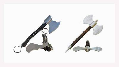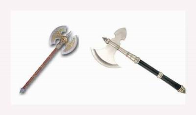 接下来,展示的将是常人需要花大力气才能挥动的战斧,战场里那些大个子们的武器(联想到黑旋风李逵的两把大板斧了吧,还有《指环王》中矮人的斧子…):