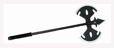 巨斧是沉重的大型斧,一般主刃为单刃,有些还有用于刺*的矛头,重量巨大,所以劈砍时无坚不摧,要求使用者得有足够的素质,由于过于沉重,所以破绽巨大,每击都需要极大的力量才能再次提起,所以装备这种武器的战士往往携带着方便的第二武器,再一次劈砍没时间提起时,便会使用第二武器对付近身敌人,拖延时间,北欧(古塞尔特,维京等)和哥特(日尔曼)蛮族的战士是用此斧的高手。