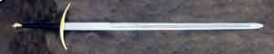 英格兰宽刃剑是奇幻小说中最常见的兵器也是中世纪欧洲军队最普遍的装备。剑有两刃,一击不中,不用翻腕即可回击。十字形把手多为铁或黄铜所制,剑柄末端常有一圆球,里面注铅,以维持用力砍劈时手腕的平衡。自罗马帝国湮没后,这种兵器广泛的出现在各个战场上,从百年战争到红白玫瑰,从《勇敢的心》到《十字军骑士》。直到14世纪,锁子甲取代简易的皮甲,沉重的宽刃剑逐渐失去用武之地,退出历史舞台。