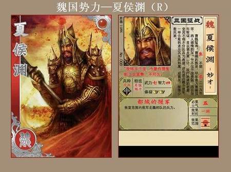 在蜀汉势力中,弓兵兵种的武将首推便是R黄忠,武八智四的属性,两金的俸禄,应该是非常适宜选进兵种平衡的武将套牌中。相比于蜀汉势力,曹魏阵营中的弓兵武将稍稍多些,诸如属性为武八智一的U许褚、武一智九的R荀彧,而R夏侯渊武七智四的属性,加上勇、魅的特技,也是极受玩家欢迎的武将。
