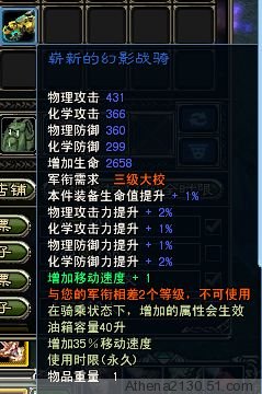 从图上可见,绿色幻影战骑提供的攻、防、生命值加成和速度加成都相当可观,并且还附带较高数值的属性百分比提升,也难怪回帖叫好声一片。要知道,越高品质的大校摩托,获得的几率越小,这部绿色战骑的主人真是相当幸运。