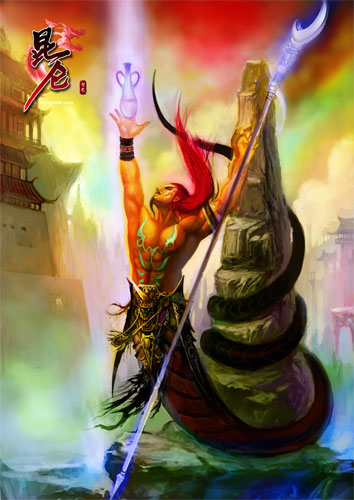 【共工族】——共工族是炎帝的后裔,以他们的先人勇撞昆仑山为傲,因而得名。他们坚信改造土地地貌才是将人类引向繁荣的唯一途径,并为自己的祖先能将世界之柱撞倒深感自豪并自认他们是世界上最强的民族,所以共工部落的人多数会显得比较自负。他们专著于研究农业生产中的水利方面,发明了筑堤蓄水的方法,所以在这里可以看到大量的堤坝和水库,泥土地面平坦。他们对内采用严酷的社会淘汰制,壮年男丁是社会高层及主体,妇女及老人社会地位低下,对小孩的教育方式是“送进荒原,能活着回来者才能算作部落的一员”这一淘汰筛选制。对外政策为:我不犯人人不犯我,人若犯我全族诛灭。所以,共工部落一致对外的时候会展现出空前团结和骁勇彪悍的部落气质。