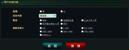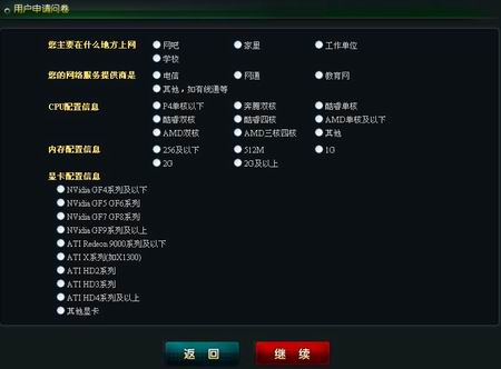 (三)我们需要了解您的游戏习惯,请选择与您的习惯最为相近的选项。 (四)我们需要了解您的上网方式与机器配置信息,这将帮助我们更好的完善游戏。 (五)我们需要了解您对于足球运动及足球游戏的看法,这将帮助我们更好的了解您的需求。第四步:完成报名申请