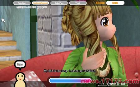 从12月23日开始到30日为止进行的《劲舞团英语》首次内测中将公开初级难度故事中的10个课程。游戏准备的所有故事均以日常生活中的常用英语会话构成,玩家可通过听、说,使用角色游戏,背诵文章等测试过程逐渐提高英语会话的熟练度。(文/17173小韩)