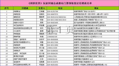 为答谢众多《剑世》粉丝的热情支持,金山软件西南办不仅准备了众多丰厚礼品,此次活动还将与“成都欢乐谷”合作。活动当天,凡是领取到成都同城会门票的《剑世》玩家,均可凭同城会门票票根参与“欢乐谷门票轻松赢”现场抽奖活动。幸运玩家即可在当天通过抽奖方式赢取欢乐谷开业活动周VIP门票。你想成为200位幸运宠儿之中的一员吗?你想和千余位《剑世》“粉丝”欢聚一堂吗?赶快前往以下指定地点领取同城会入场券!