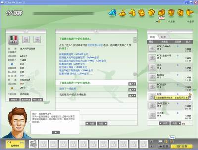 左边是大家的球队信息,中间则是游戏常用内容的快捷选项,右边的频道以及好友可以方便大家迅速的了解以及找到一个好对手,下部则是快速使用或购买道具的地方。