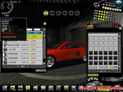还在回味MM丰满的身体时,我就被躁动的金属质音惊醒。睁眼一看,我竟来到了车库,这个也是以后的家了吧!车库很残破,到处锈迹斑斑,那一扇铁门更是陈旧,火红的车在白圈里待着。左上角是汽车的级数信息,右上角除了性能数据外,还有赛车的名字与评级,新人车都是C级,为了向B级、A级、S级努力跑车、接任务、竞赛都是迅速获得金钱购买高级车的途径,当然经验也很丰厚。界面的下方是一排而过的功能栏,有商城、个人信息、物品箱、邮件、任务、社交、排行榜、车队、GM、录象、交易所、车辆装配12个强大的功能键。而右下角的游戏大厅与城市的两种赛车方式,游戏大厅提供房间给玩家们互相切磋技艺,竞速赛道、竞速城市2种不同的任务地图让玩家们斗智斗勇,比拼技术;进入城市后即能与在城市里的NPC们进行任务交接,获得满意奖励。
