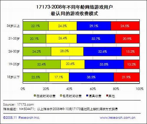 调查还显示,性别因素对此选择影响不大,无论女性还是男性,喜欢道具收费模式的都最多。但年龄因素对此影响则非常明显,年龄越大的玩家,对道具收费模式认可度越低。但无论哪个年龄段,选择道具收费模式的玩家比例都是最高。