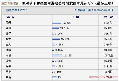 完美时空、网易、盛大和金山最被投票玩家认可。
