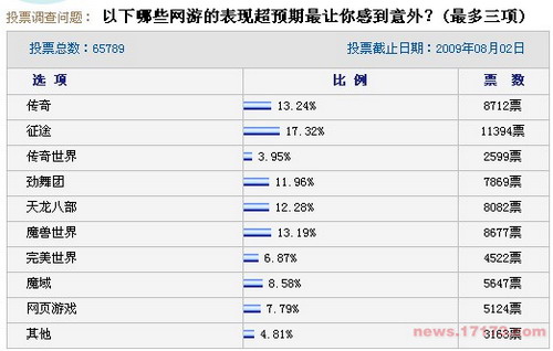 《征途》毫无悬念当选,《魔兽世界》、《传奇》和《天龙八部》次之