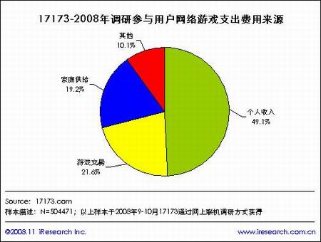 《17173第8届中国网络游戏市场调查报告》显示中国49.1%的用户游戏支出来源为个人收入,通过游戏交易获取的比例排名第二,为21.6%,其次为家庭供给19.2%.