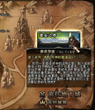 迷妄之塔坐落于阿拉德大陆北方的亡者峡谷,塔共有25层,每层都会出现不同等级的怪物,或者人工智能的APC,这些APC也会使用各种技能与连招,可谓实力不可小视。玩家只能持有每天分发的“死神的邀请函”才可进入塔中。当通过挑战后,不光可以获得大量的经验与PK点,物品的抽取与排行榜的排名也是吸引玩家们挑战自己极限的诱人筹码。而你所做的一切更不会消耗你宝贵的疲劳值,一劳多得。