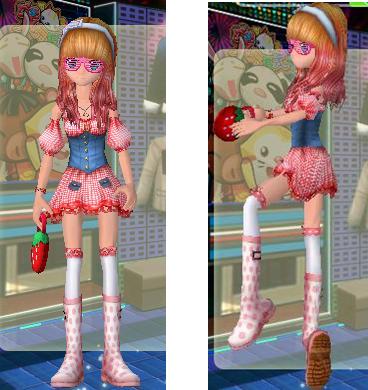 每位女孩从小的时候,都梦想成为一名公主,拥有爱她的人和她爱的人,成为万众宠捧的对象!这个梦想现在在超舞里就可以实现,甜美的露肩格子衬裙把完美的身形修饰得淋漓尽致,一头微卷的长发配上可爱的粉红眼睛,时尚与可爱结合得恰到好处,一双粉红圆点靴靴衬托出修长的腿型,提上心爱的草莓包包更能衬托出公主的可爱喔!甜美的公主在舞池中轻摇舞姿,等待心中的王子的出现……