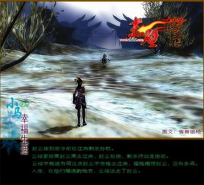 自玩家【猫猫】精心创作了《赤壁(专区 截图 官博)》画皮之后,众多玩家都纷纷用唯美的截图讲述了自己的游戏经历,玩家【雪舞银枪】便用这些精美的截图,讲述了一个玩家的游戏生活,更以此来恭祝各位玩家新年快乐!