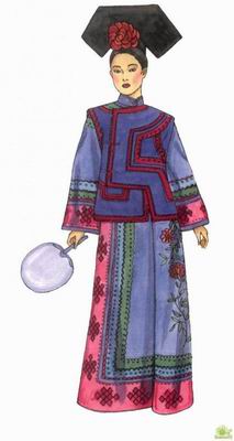 满族妇女着“旗装”,梳旗髻(俗称两把头),穿“花盆底”旗鞋。至于后世流传的所谓旗袍 ,长期主要用于宫廷和王室。氅衣为清代的妇女服饰,氅衣与衬衣款式大同小异。衬衣为圆领、右衽、捻襟、直身、平袖、无开气的长衣。氅衣则左右开衩开至腋下,开衩的顶端必饰有云头,且氅衣的纹样也更加华丽,边饰的镶滚更为讲究。