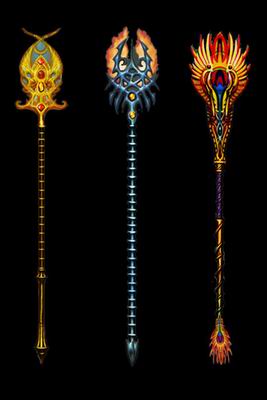 从某种程度上说,杖并不能算是真正的武器。它更多是术士的法器,杖是法术的象征。用它招来雷电,用它震慑妖魔。杖是一种权威,是一种精神力量的聚合,用意念驱使外界的力量来震慑、来攻击。所以术士是神秘的,正如他法杖上的图腾一样,指引着诸佛的神力。