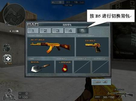 想让仓库里的武器有更多的曝光机会?那就开启五号背包吧,在游戏中可以按B5来切换。让自己更多的武器光荣走上战场,《穿越火线》五号背包等待你的开启!