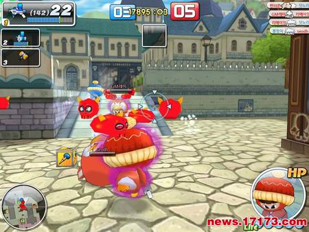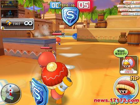 4:4方式进行的团队赛,玩家在攻击对方角色的同时还要去救被关在水泡中的己方角色。(文/17173小韩)