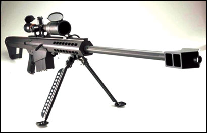 Barrett M82A1狙击步枪,在国际军火界拥有“重狙击之王”的赞誉。全长1448毫米,口径12.7毫米,枪重12.9千克,最大射程1830米,价格约为人民币八十万元,每颗子弹的价格约是人民币两百元。每套M82A1狙击枪,包括专用狙击镜、M33标准弹、M8穿甲弹。
