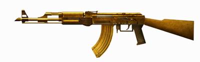雅金AK:使用30发7.62mm装弹的突击步枪。是T阵营的精神领袖级装备,也是身份的象征。只有T阵营之中的佼佼者才能拥有的雅金AK,使用典雅黄金精致镀炼,使AK的张扬霸气中渗入金尊灵气,在战场上发挥更霸道的杀伤力。
