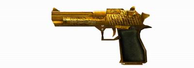 荒漠金鹰:使用.50AE装弹的手枪。虽然装弹量只有7发,但是却拥有步枪级的破坏力,每把都由金匠精心打造,宛如金色猎鹰在荒漠中追捕猎物般凶猛。枪体上精致的纹路,令其宛如一件艺术品般绽放出璀璨夺目的光芒。
