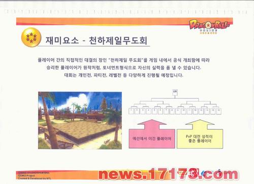 游戏里举办天下第一武道会,胜利的玩家就可像原作那样通过淘汰赛展示自己的实力。大会将分为个人赛、团队赛、等级赛等多种方式进行。