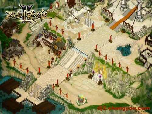 《刀剑英雄Ⅱ》的游戏中的凡界以九州为蓝本制作,每个大州根据所处地理位置不同,都会有不同的地貌风格,或既有沧桑的大漠风情,也有柔情似水的江南风物,还有冰天雪地的白色世界,相信踏入不同的场景将带给你不同的冒险体验。而作为玩家聚集的城市场景我们这可以从公布的原画中找到一些蛛丝马迹。