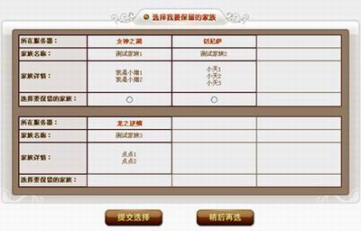 如果您在即将相互组建的各服务器中最多只有1个家族,那么您不需要进行选择,现有的家族都将被保留。