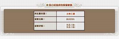 页面将显示您在相互组建的几个服务器里家族的情况,包括:所在服务器、家族名称、家族详情(各角色名称、是否加入了公会、是否公会会长)。