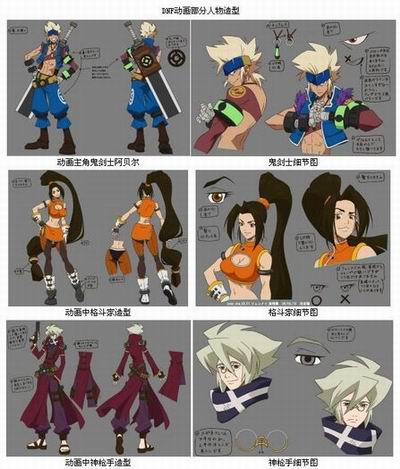 故事人物形象基本与游戏内人物相同,故事情节也建立在《地下城与勇士》本身游戏的结构与框架之上。故事从阿拉德大陆年历891年起讲述,从一场大火的降临开始,主人公羽乱?安德鲁因为被诅咒,一只手被鬼化了,也就是我们游戏中鬼手的形象。为了解除诅咒,他一路历经艰险,各类主人公也纷纷出台。有被灵魂附体的长剑罗琦西,外表丑陋却是大家信任的领导级人物。格斗类女主角则是外表秀丽,活泼又有着强大力量的龙芽伊?兰加。动画片中还有男枪和女枪的形象人物。男枪手形象主角,贺边史守,爱美人,爱自我陶醉,在故事的发展中,一步步成为真正的高手。故事中最出彩的莫属于女枪手的形象与情节了,罪与恶的对峙,拥有着机智勇敢的个性,又有着女性独有的母爱,一个充满着魅力与梦幻般的角色。