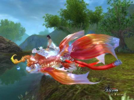除了天上飞的巨鸟,地上跑的神兽,《诛仙》的坐骑队伍中还有一部份特别的存在,那就是充满梦幻色彩的、由水中的神兽化身的魅力坐骑。而其中最具代表性的当属美丽的锦鳞了!