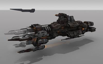 首先我们接触到的是艾玛族战略巡洋舰。这张在太空中飞翔的艾玛族飞船可能会让许多艾玛族拥众有些认不出来,它太苗条了。但大块的碳化钨装甲,艾玛族战舰特有的涂装颜色彰显着其身上流淌着的皇族血统。另一张在船坞中的图则让大家可以看到艾玛的战略巡洋舰大气十足的一面。