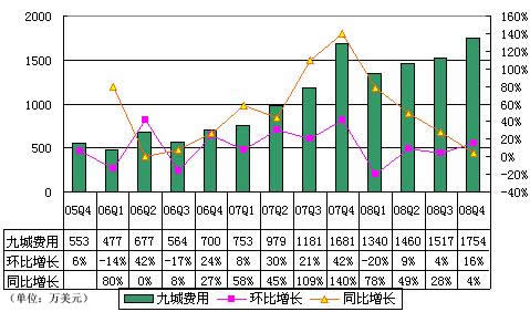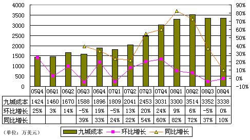 九城第四季度成本为3338万美元,较去年同期增长10%,与上一季度基本持平。