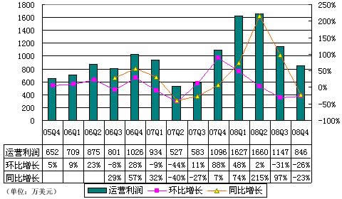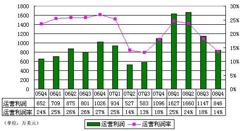 九城第四季度运营利润为846万美元,运营利润率为14%,s九城运营利润率创下自07年第四季度以来最低纪录。