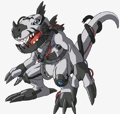 钢铁霸王龙兽是用于地面战斗攻击的数码宝贝。其坚硬的下颚能咬碎任何防御盔甲。一眼就能看出它具有无敌的力量和坚韧的身,其右臂发射的导弹和左臂发射的能量弹都有巨大威力。