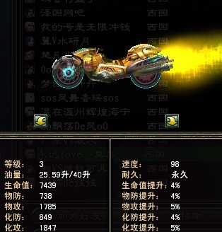 根据目前的测试系统,玩家可将蓝色品质以上的幻影战骑和各种特殊坐骑合成改装,它们包括:08限量版飞天战骑、09限量版极限战骑和火焰战骑,在NPC“车行售货员”处即可完成改装。