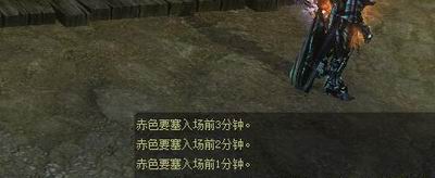 进到测试区,花了点时间把装备、道具、药水等东西准备好之后,就等赤色要塞开启了。刚开始的时候,测试区是每小时开启一场赤色要塞,不过在正式服里是每天晚上八点和十点各一场哦!在赤色要塞开启前五分钟开始,就会有系统提示,每隔一分钟提示一次,在游戏画面的中上方和右下角的系统提示都会有显示。