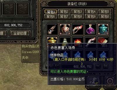 赤色要塞入场券在各大城镇的杂货商人NPC那有卖,每个10000游戏币,是每一个普通玩家都买得起的。把鼠标移到入场券上,还可以看到离下一场赤色要塞开启还需要的时间。入场券和普通物品(非装备)一样,最多可以叠加成255个/组,方便大家一次性购买多个备用。