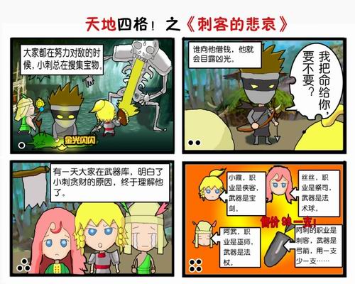 今天,游戏厂商目标软件特别在新区开放之际,放出了这些漫画。漫画以侠客小霞、刺客小刺、巫师阿武、祭司丝丝四人为主角。每个人的职业不同,性格也各有特点,在一起组队做任务,常常闹出各种各样的笑话。赶快来看看这些超级搞笑的四格漫画,说不定这就是一位明日的漫画之星值得纪念的处女秀哦!