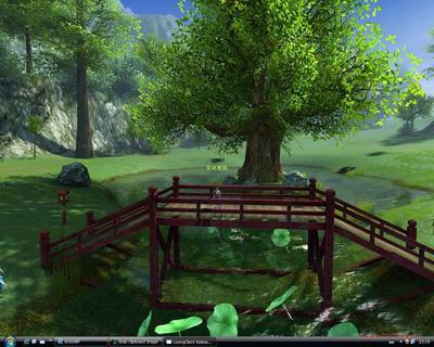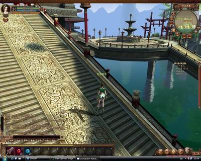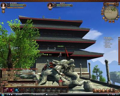 在进入《龙》的世界后,我被那迷人的风景和雄伟的建筑物所震惊!它的客户端才1个多G啊,而它给你带来的视觉感受完全超越想象!《龙》的世界中风景宜人,草地、树叶、光照、影子等细节都做的相当精致;宏伟的建筑,完全按照中国古代的风格所设置,在《龙》体现的淋漓尽致,可以看出这个游戏的开发人员付出相当的心血!从此笔者推断它的引擎是相当强大滴,纯属个人意见!