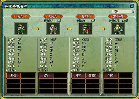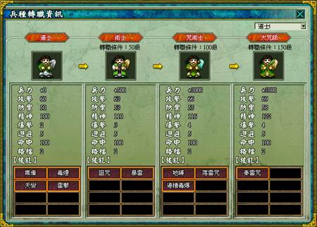 在此之前,游戏已经开启兵种二转。武将等级达到50级和100级时,分别可做一次转职。每一次转职,都需玩家打落或收集相应兵种的转职令,并集齐一定材料和金钱。但即便如此,玩家对转职的渴望也是不可阻拦。因为经历转职,武将不仅各方面的能力都会得到大幅提升,还能习得全新的兵种技能,无异于涅槃重生。若全队武将均转职,玩家所带的队伍也将无往不胜!