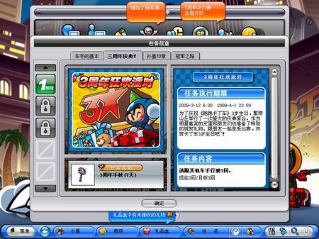2009年3月17日,《跑跑卡丁车(专区 视频)》三周岁的生日也就到了,但是从此刻开始,一场史无前例的庆典已经拉开帷幕!精彩活动、优惠酬宾、火爆比赛一应俱全,而你所需要做的,就是尽情享受这狂欢的时刻,在赛场中挥洒激情!