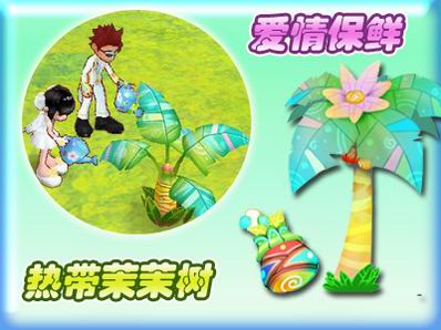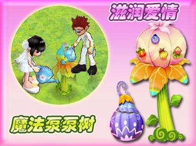 泵泵树的果实拥有很多水分,用它来滋润爱情最合适不过啦!在经验值满的状态下,摇树就会掉下装有宠物食品和农场卡片的果实